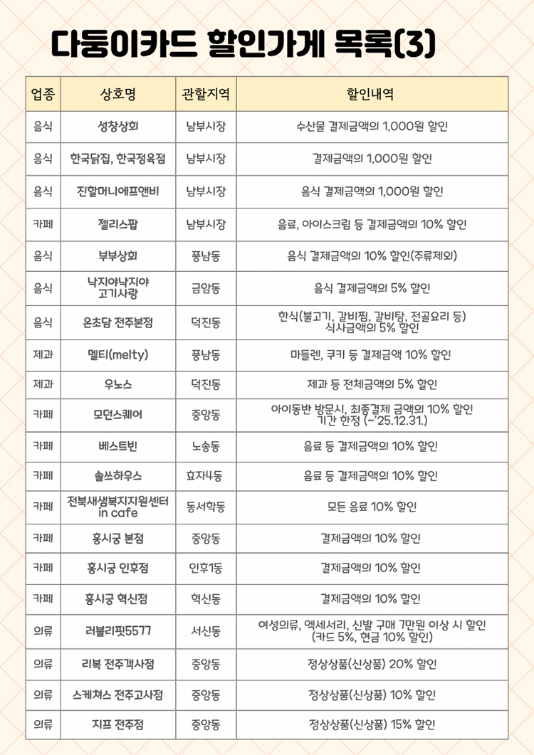 - 다둥이카드 신청 : 전주시 전북은행 각 지점 (신분증, 주민등록등본 지참)