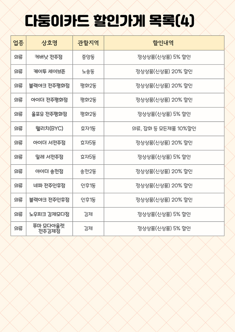 다둥이카드 할인가게 목록