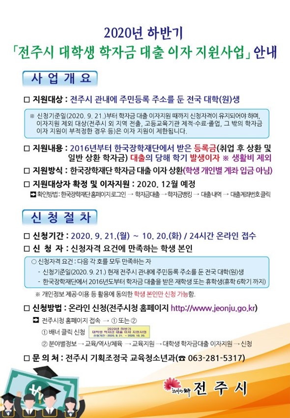 2020년 하반기 [전주시 대학생 학자금 대출 이자 지원사업] 안내