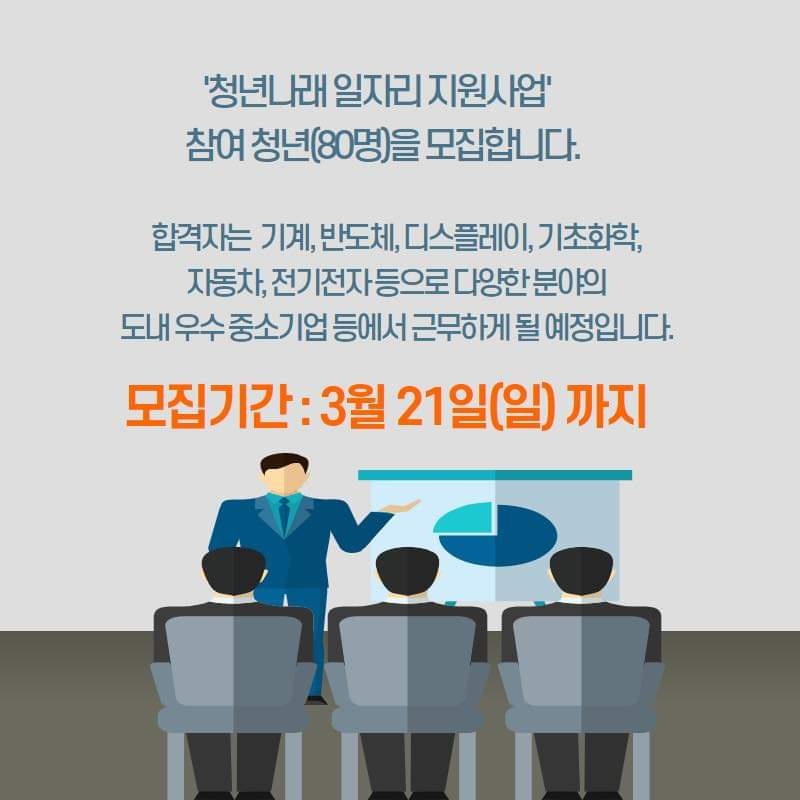 도내 청년들의 지속가능한 경제활동을 통해 지역의 청년 일자리 선순환구조에 기여할 「2021년 청년나래 일자리 지원사업」에 참여할 청년근로자를 모집합니다