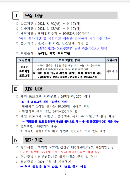 유아, 어린이, 청소년 등이 흥미롭게 즐기면서 창의력을 향상시킬 수 있는 과학 체험 프로그램을 온라인으로 운영할 계획입니다.