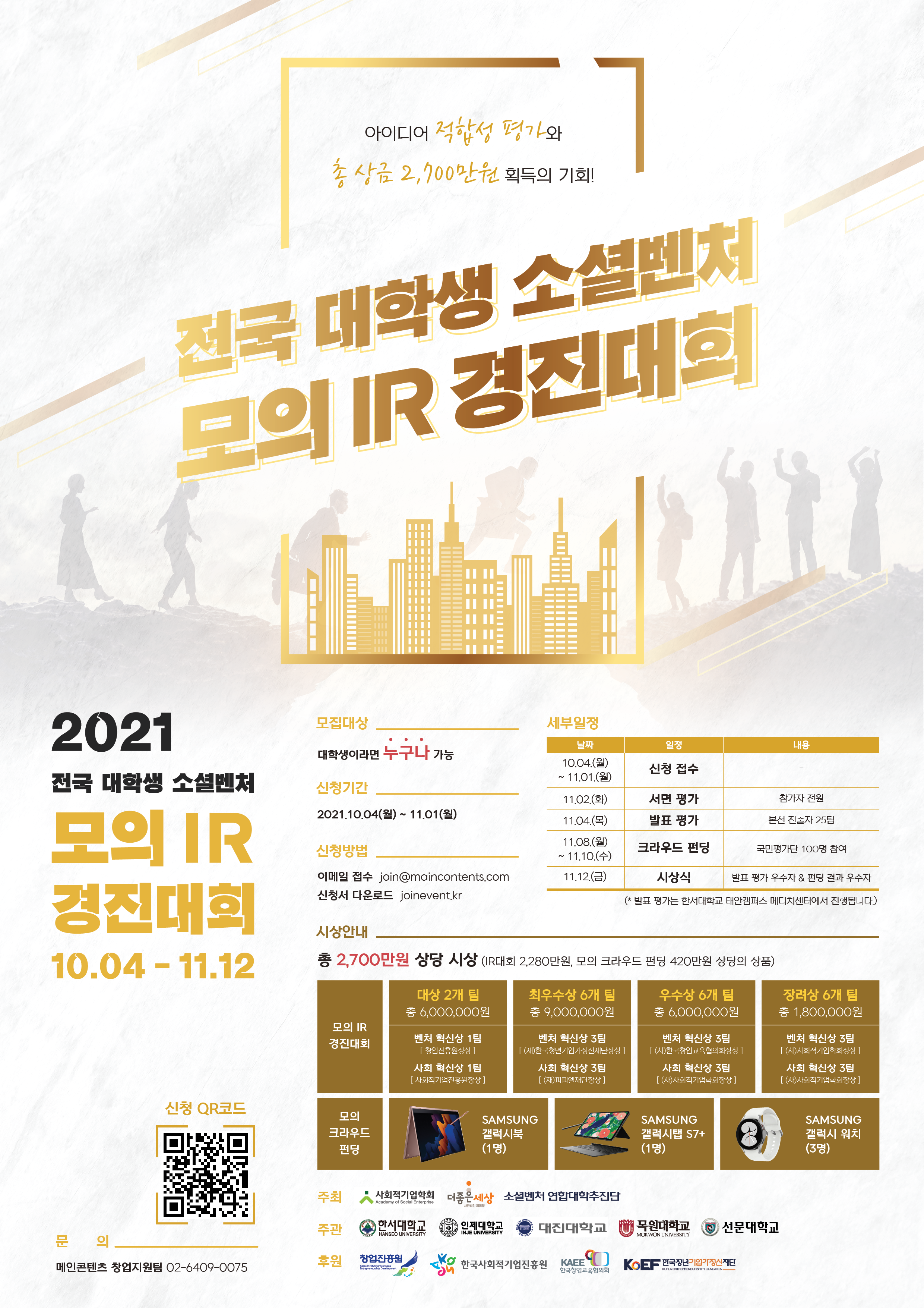 『 2021 전국 대학생 소셜벤처 』 모의IR경진대회 참가자 모집