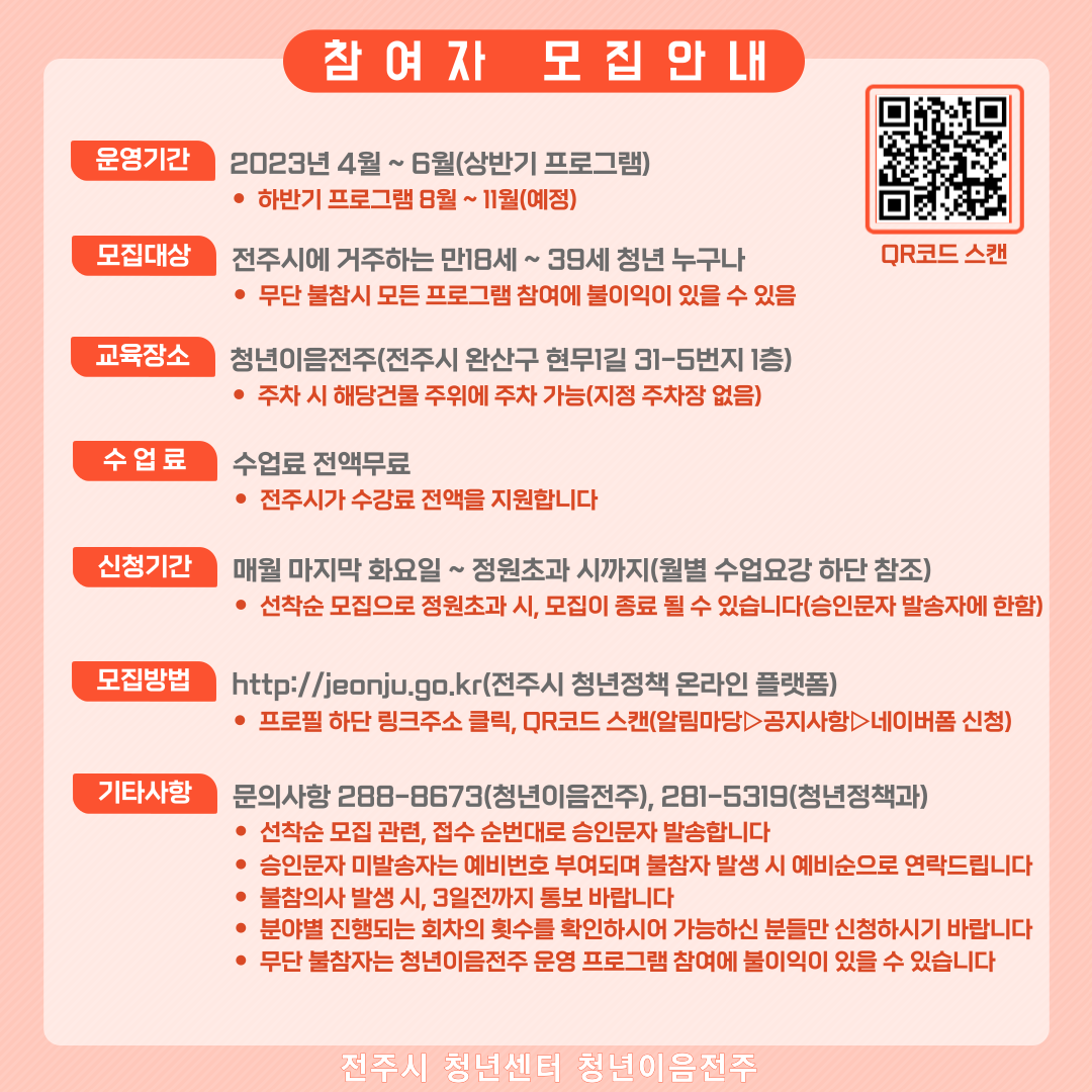 [청년이음전주] 2023년 상반기(4~6월) 문화수업 프로그램 안내